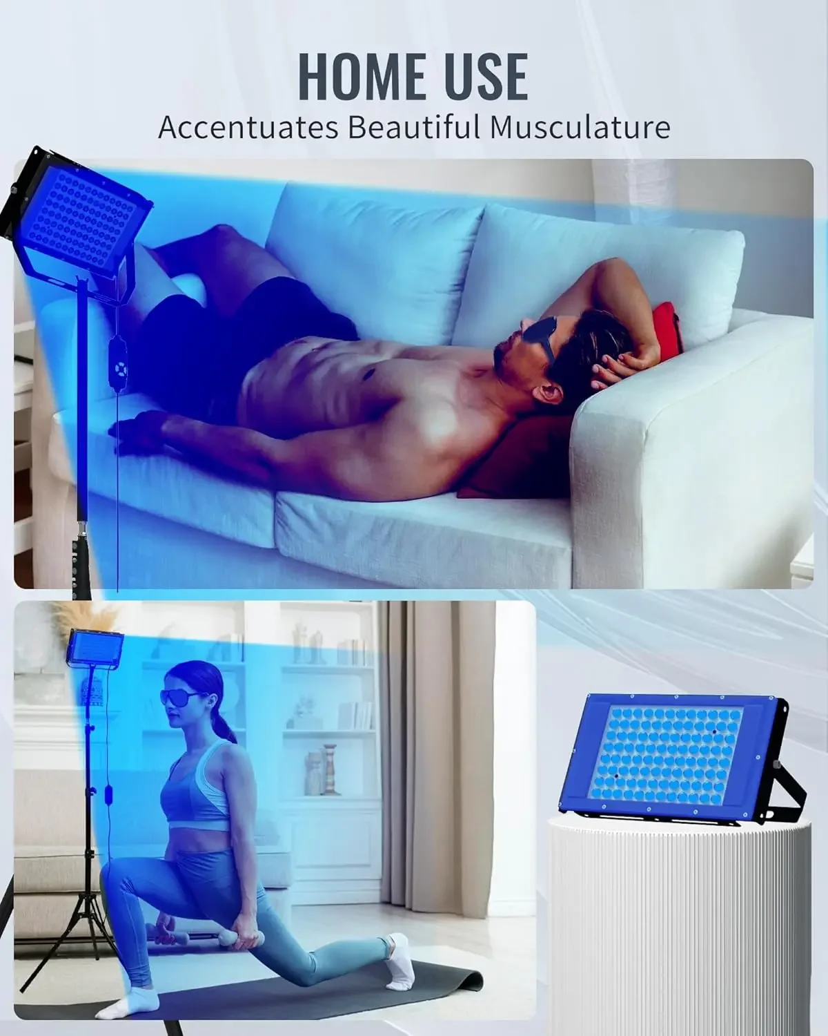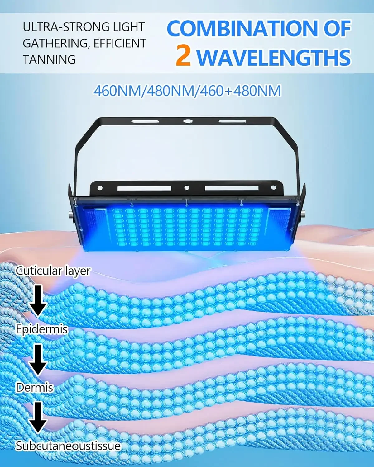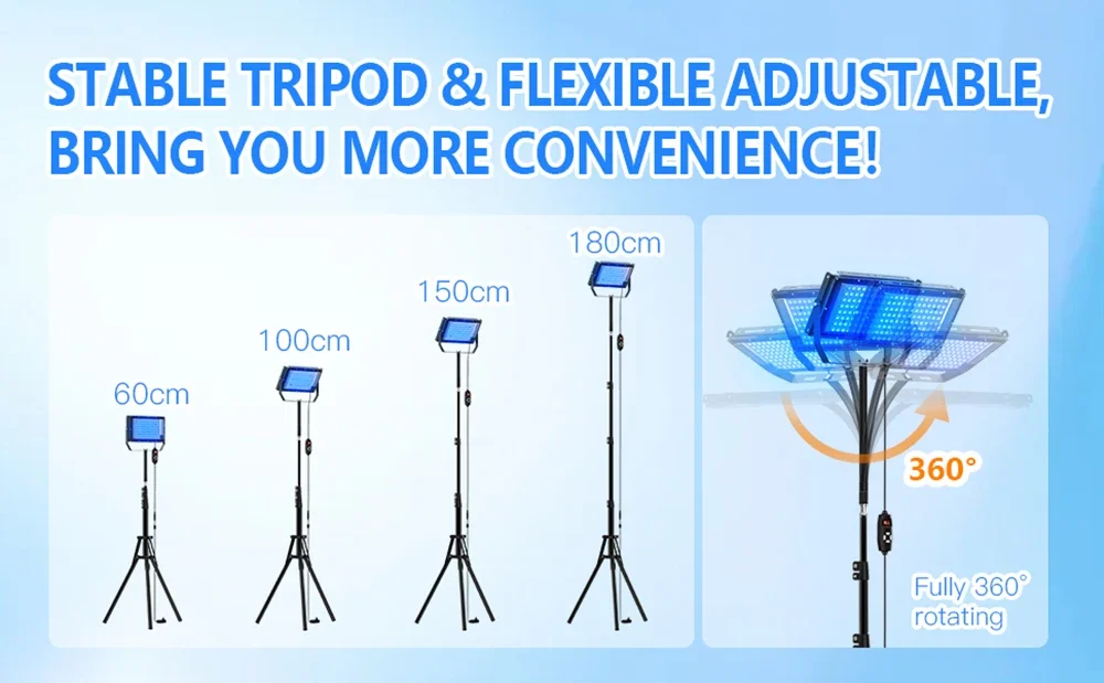 50 W deginimosi lempa su trikoju stovu, soliariumo lempa UV deginimuisi, bangos ilgis 460 nm ir 480 nm, 96 vnt. mėlynos šviesos lempų, soliariumas, deginimasis, odos priežiūra