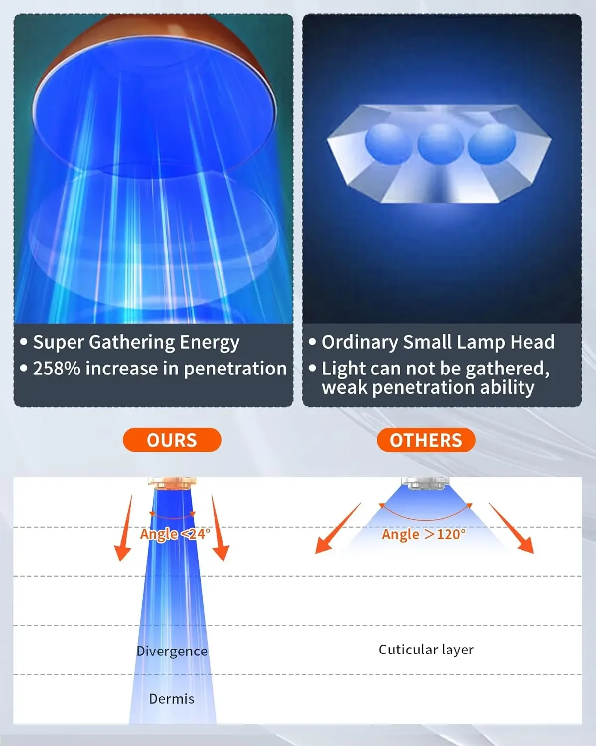 【 Didelio ploto apšvietimas 】 Ši deginimosi lempa sudaryta iš 420 šviesos diodų. Ją galima naudoti veidui, nugarai,